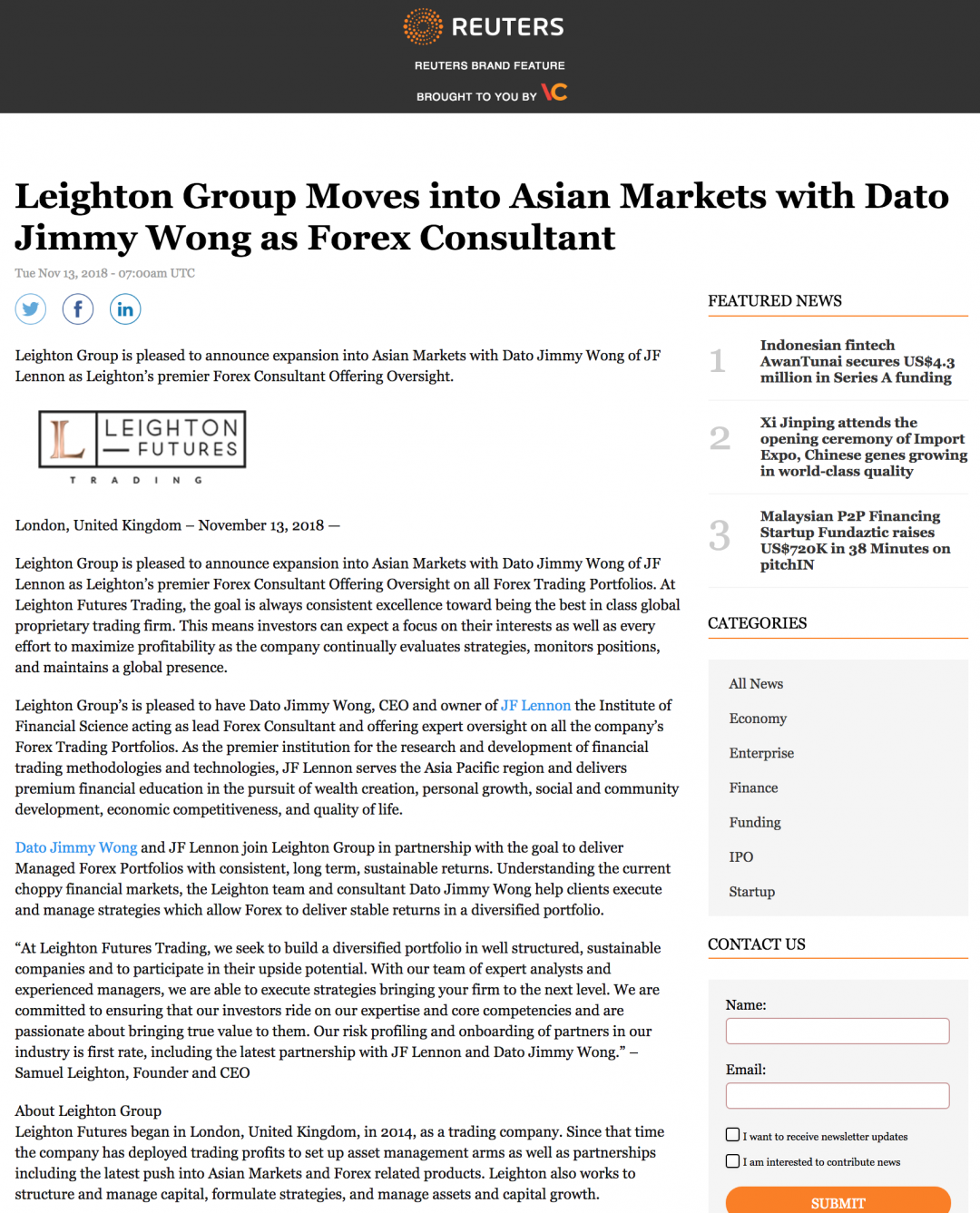 I am in high spirit and proud to announce that I am the first Asia Forex Institute in HISTORY to be in partnership with one of London’s elite Financial Investment companies!